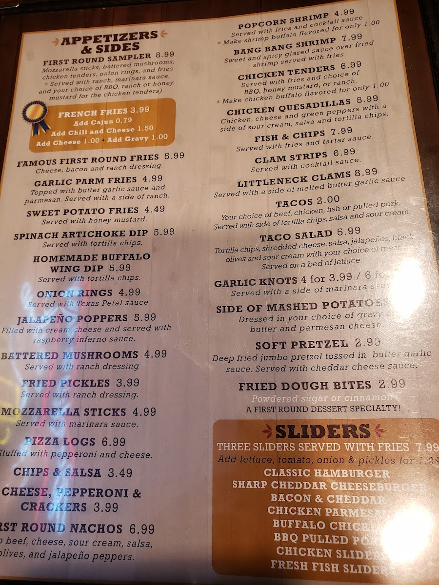 Enjoying a meal here often involves casual conversation over flavorful wings or a perfectly crisp quesadilla, all in a setting where the energy varies from relaxed afternoons to busier weekend nights. The food and drinks gently support those moments without overwhelming them, making First Round a dependable spot for simple, enjoyable dining.